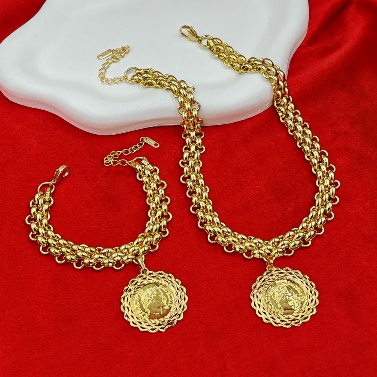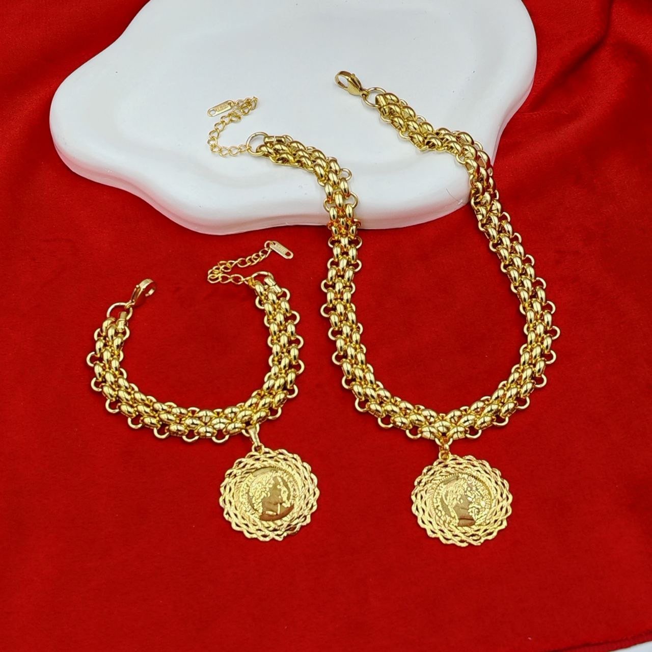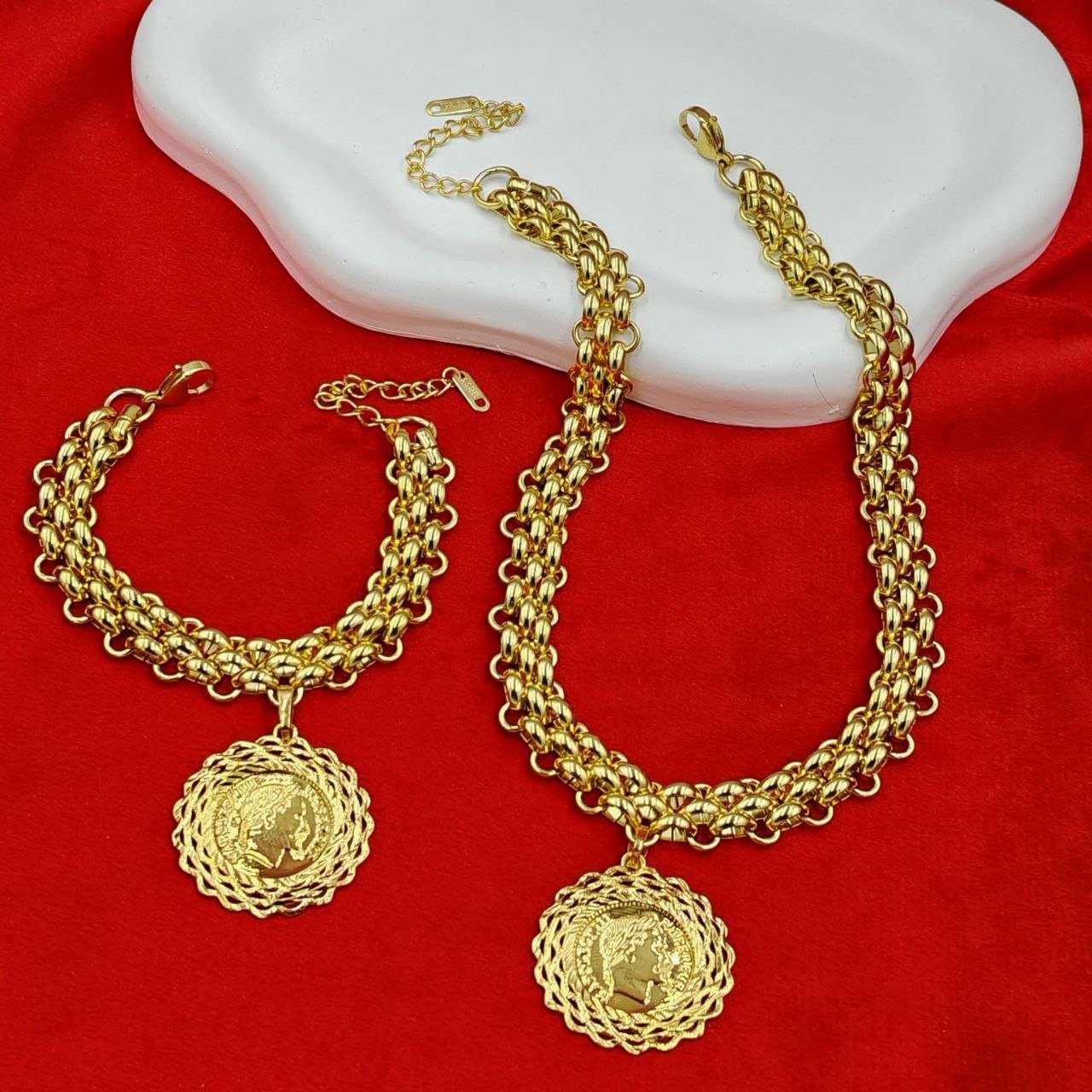 Parure duo sbika + médaillon Louiza 24K — collier et bracelet femme en Algérie